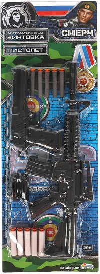 - Состав набора автоматическая винтовка, пистолет, 10 безопасных мягких пуль