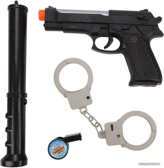 - Состав набора пистолет, электрошокер, свисток, наручники