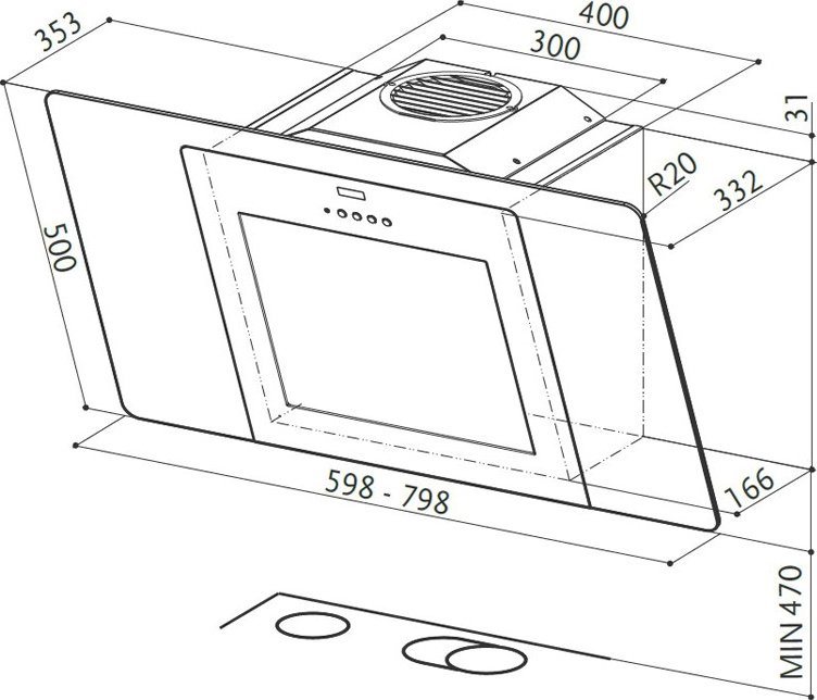 Настенная, наклонная кухонная вытяжка, ширина 59.8 см, тип очистки воздуха: отвод, рециркуляция, количество скоростей 3, макс производительность 530 м3/ч, кнопочное управление, металлический жироулавливающий фильтр, угольный фильтр приобретается дополнительно, макс уровень шума 67 дБ.