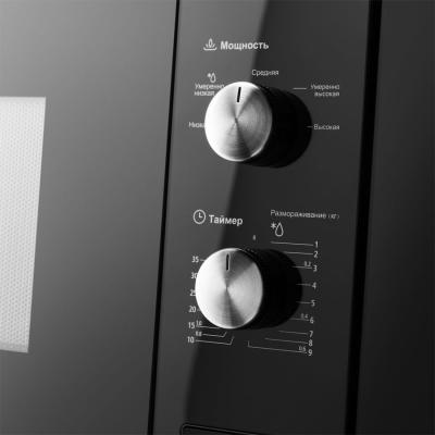 Прочие особенности и свойстваВстраиваемая микроволновая печь MAUNFELD MBMO.20.1PGB с внутренним объемом 20 л располагает 5 уровнями мощности, выбор которых производится посредством поворотных переключателей на корпусе. Рассчитанный на 35 минут встроенный таймер обеспечит автоматическое выключение домашней помощницы по истечении обозначенного вами временного отрезка. В качестве внутреннего покрытия использовалась нержавеющая сталь, устойчивая к регулярному воздействию моющих средств. Чтобы открыть навесную дверцу MAUNFELD MBMO.20.1PGB, достаточно нажать соответствующую кнопку в основании. Прибор справится с быстрой подготовкой продуктов к последующему кулинарному процессу, ведь он располагает функцией размораживания.
