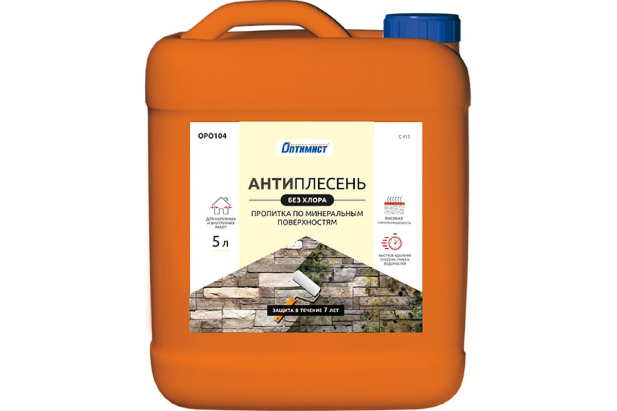 Пропитка Оптимист Антиплесень (без хлора; по минеральным поверхностям; 5 л) OPO104 предназначена для восстановления заросших грибками и водорослями минеральных поверхностей. Поставляется в готовом к применению виде. Практически без запаха, нетоксичная, экологически безопасный материал.