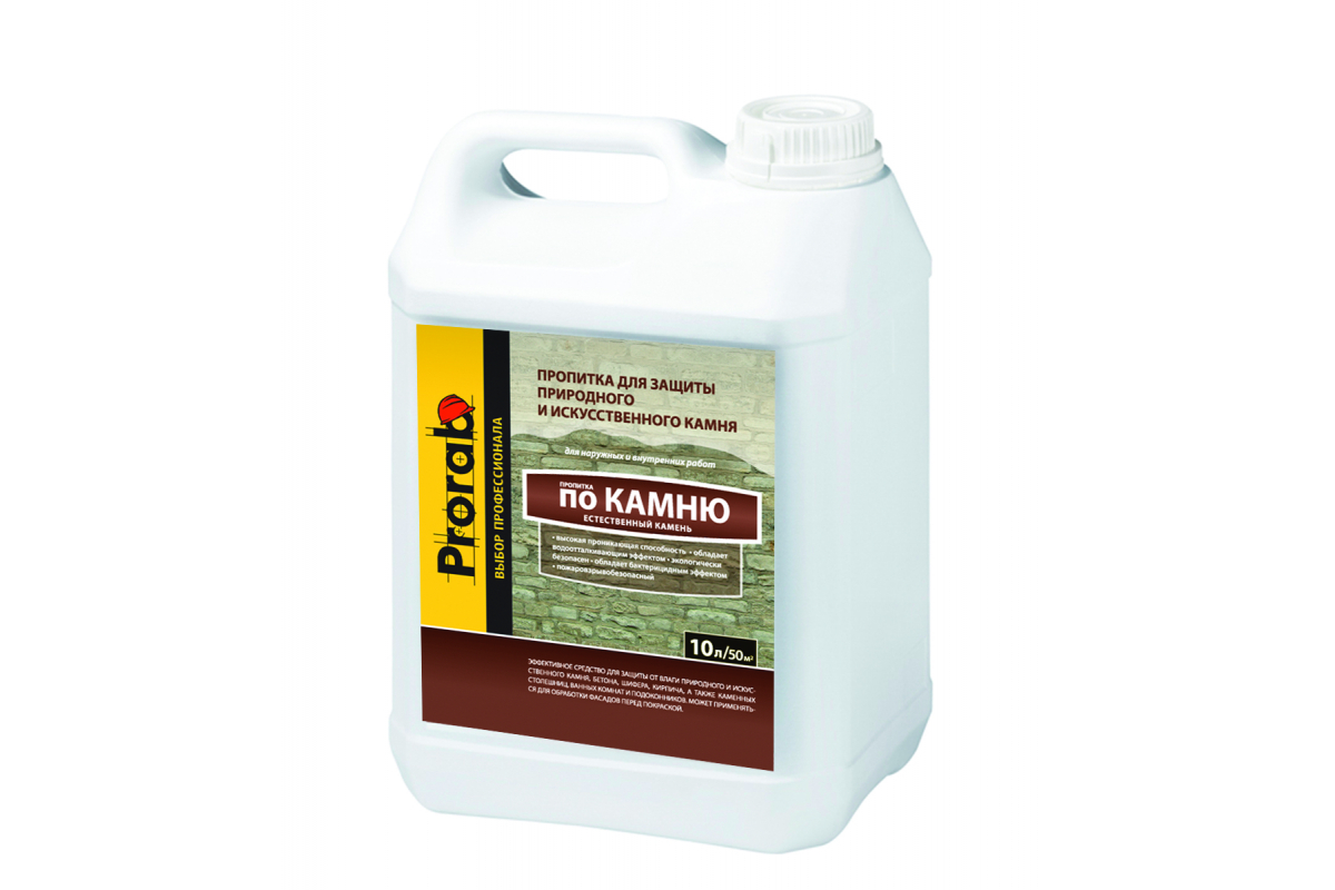 Пропитка по камню PRORAB Естественный камень 10 л PPEK-10 предназначена для надежной защиты бетона, кирпича, шифера, природного и искусственного камня от влаги. Средство используют для обработки фасадов перед покраской, каменных столешниц, ванных комнат, подоконников. Продукт придает поверхности эффект "естественного камня" и бактерицидные свойства. Состав с высокой проникающей способностью не токсичен, экологически безопасен и не имеет сильного запаха.