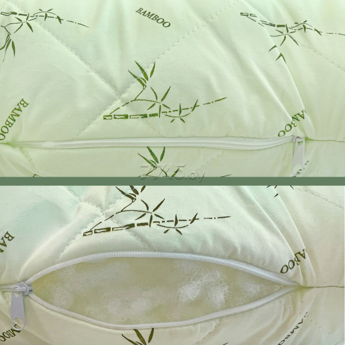 Наполнитель наволочки: 40% бамбук, 60% волокно силиконизированное Файбертек. Наполнитель подушки: волокно силиконизированное Файбертек. Состав ткани: 100% хлопок.