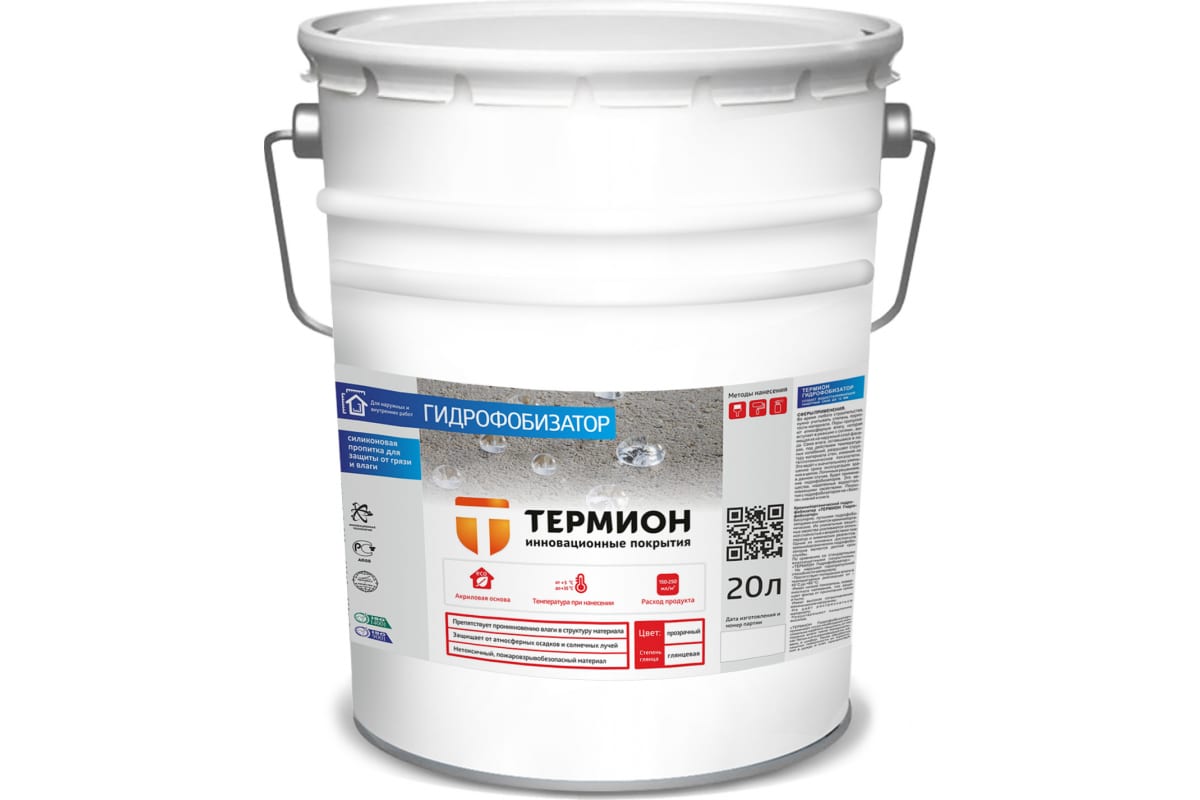 Гидрофобизатор ТЕРМИОН 20 л ГФ10003 - это водные (или органические) растворы силиконовых компонентов. Гидрофобизатор, благодаря воде, или другому «транспортировщику», попадает внутрь материала, на который наносится покрытие. Там он создаёт водозащитный, при этом проницаемый слой, защищающий конструкцию от попадания влаги.