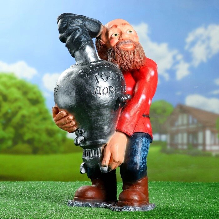 Садовая фигура "Дед с самоваром" 56х34х32см