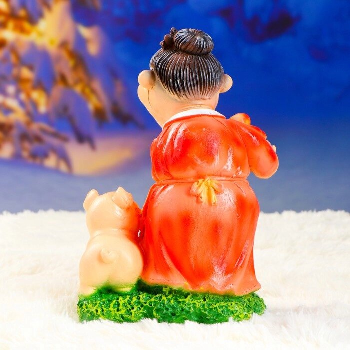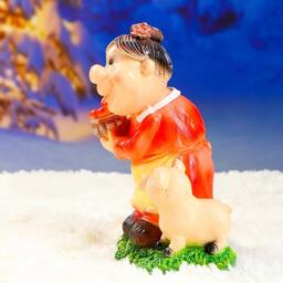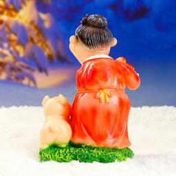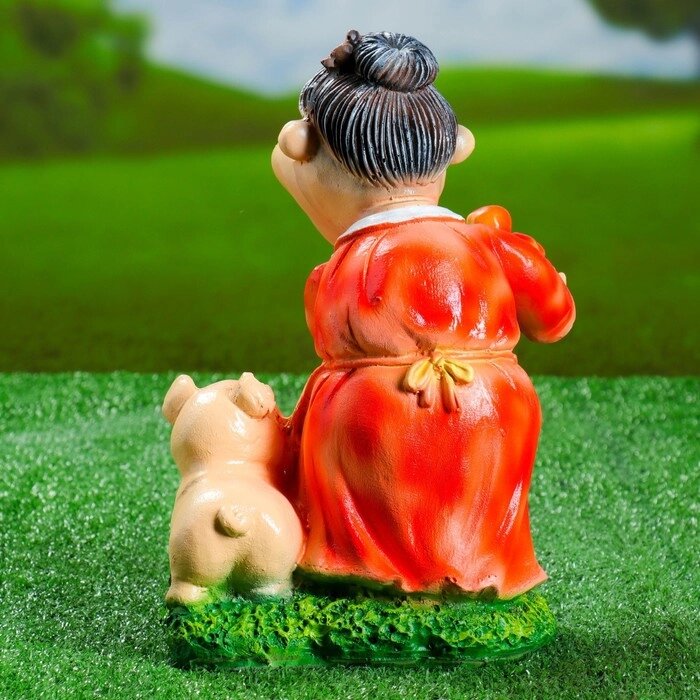 Садовая фигура "Бабка с поросенком" красно-желтая Н-30см,L-21 см