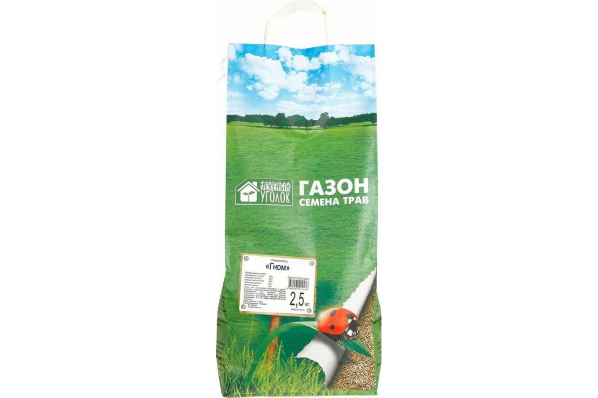 Семена газона Зеленый уголок Травосмесь Гном Стандарт 2.5 кг 20734 используется для создания газонов высокого качества в парках, садах, вокруг коттеджей и загородных домов.