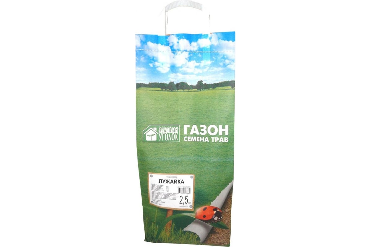 Семена газона Зеленый уголок Травосмесь Лужайка 2.5 кг 20740 подходит для создания лугового газона около детских учреждений, а также в зонах отдыха: парках, скверах.