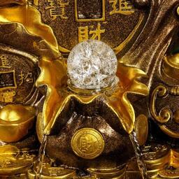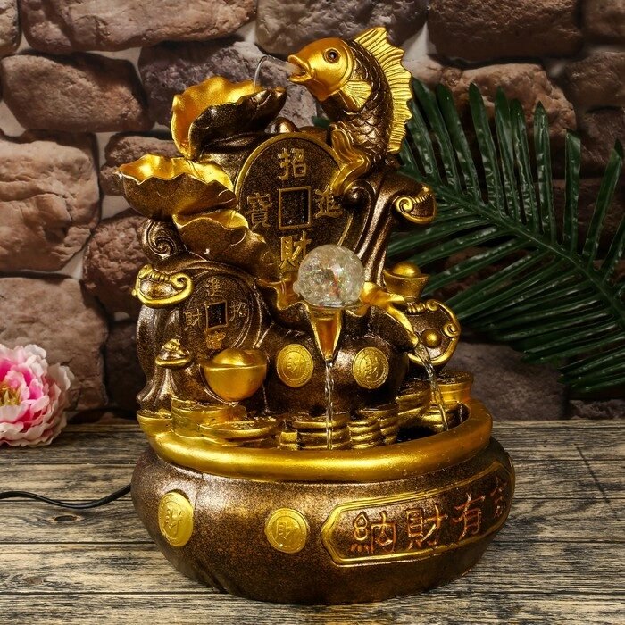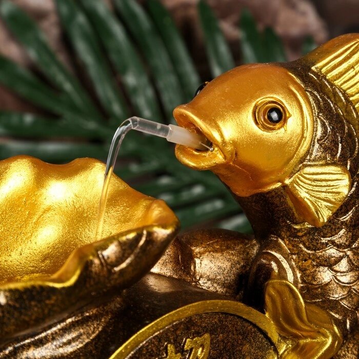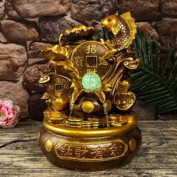 Фонтан настольный полистоун от сети свет "Карп с монетами" 39х24,5х22 см