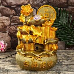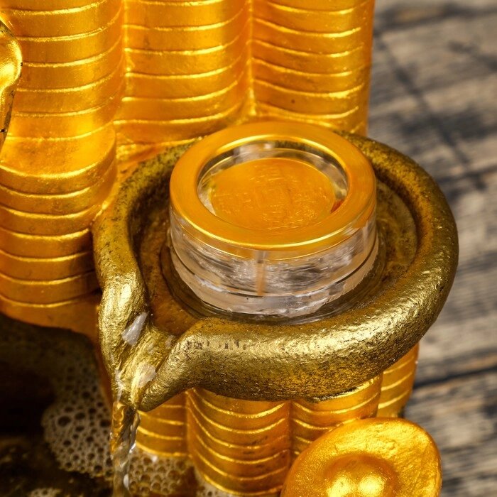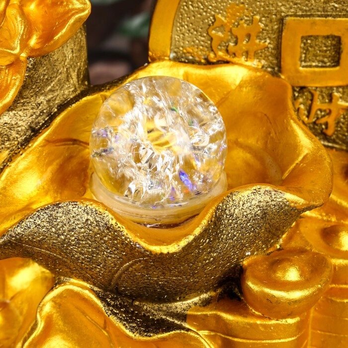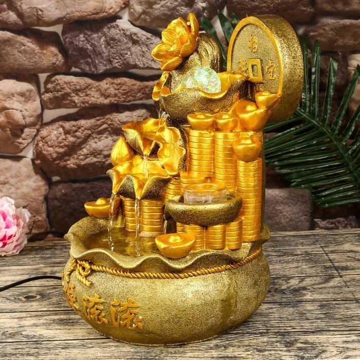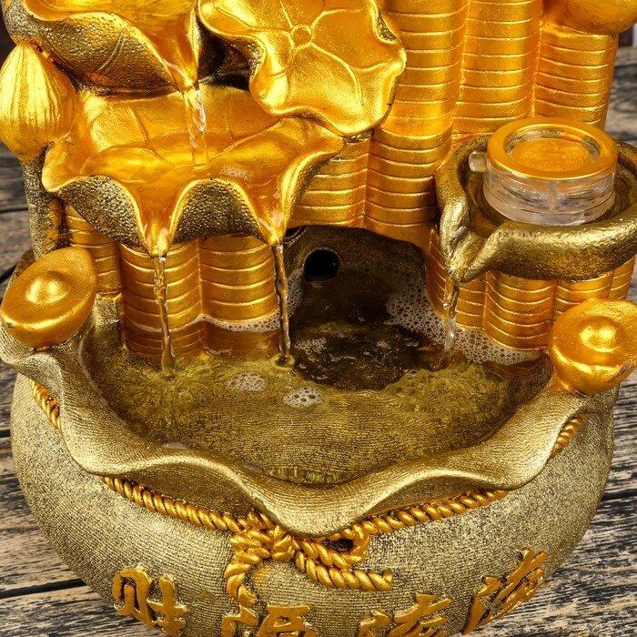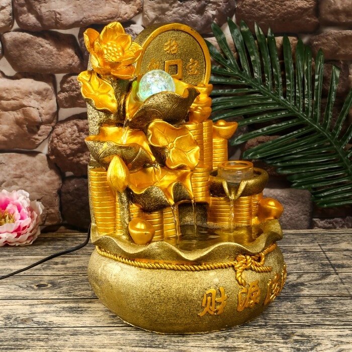 Фонтан настольный полистоун от сети свет "Монета и лотосы" 38х26,5х22 см
