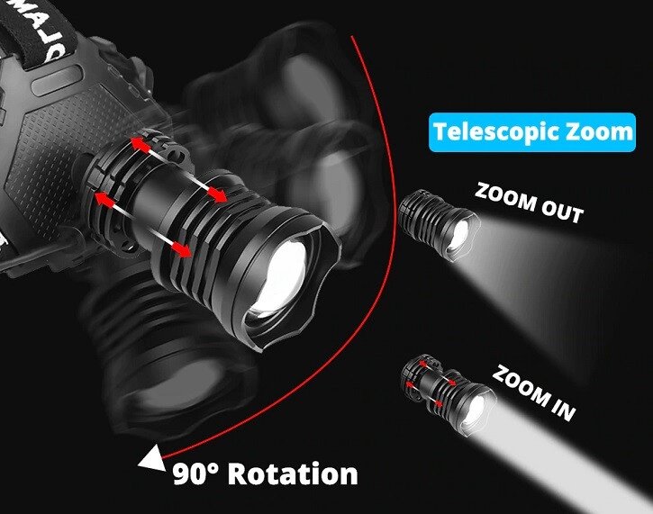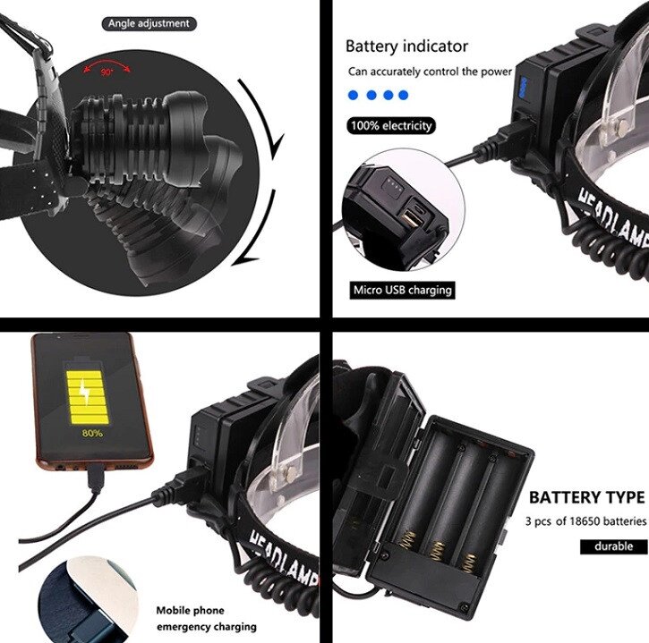 Фонарь налобный с АКБ HT-799-P90 (3 аккумулятора 18650, зарядка от micro USB)