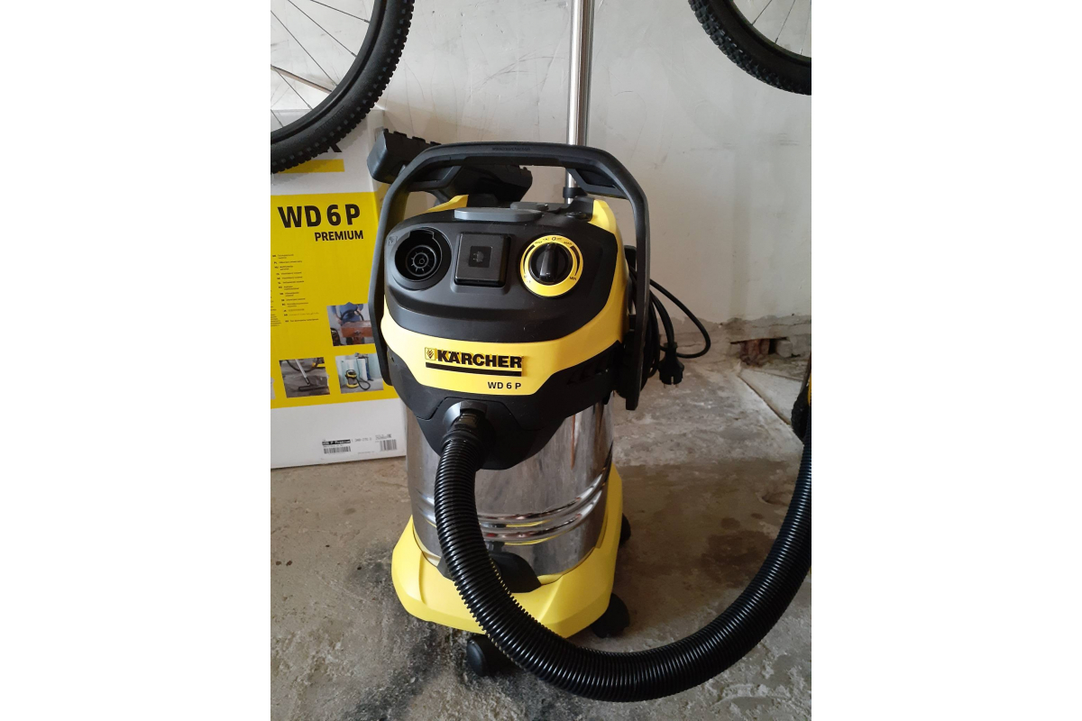 Пылесос Karcher WD 6 (MV 6) Premium 1.348-270 имеет мощность 1300 Вт, но обеспечивает ту же силу всасывания, что и пылесос мощностью 2000 Вт. Данная модель оснащена плоским складчатым фильтром, штепсельной розеткой с автоматикой включения/отключения, системой очистки фильтра, вместительным мусоросборником. Длина сетевого кабеля составляет 6 м.
