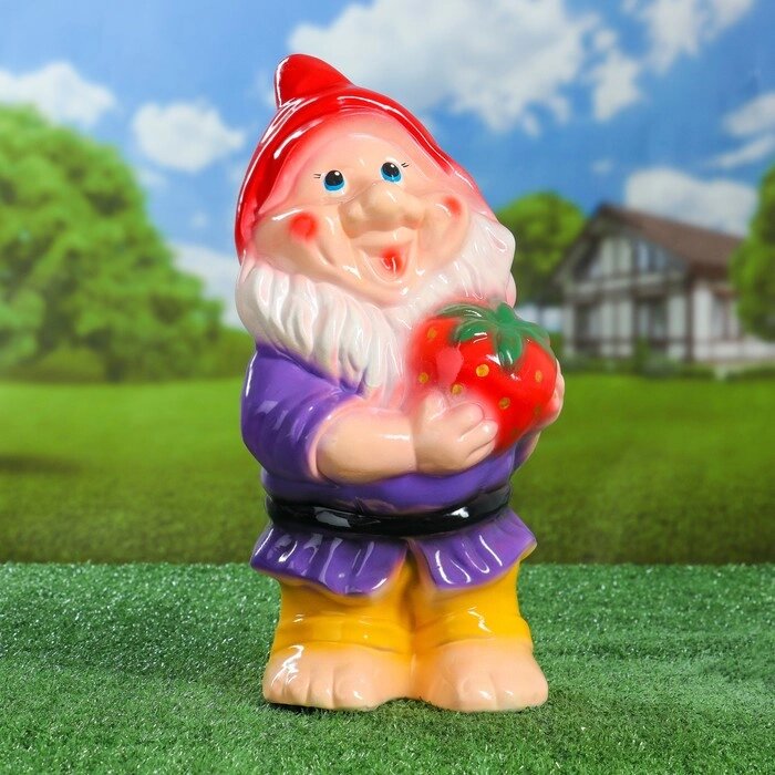 Садовая фигура "Гном с клубникой", разноцветный, 38 см, микс