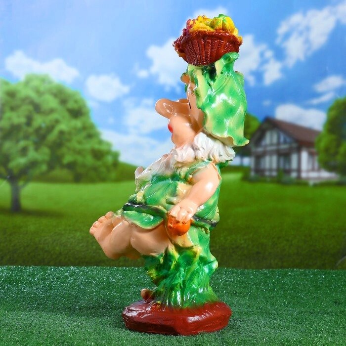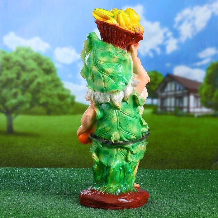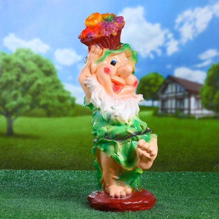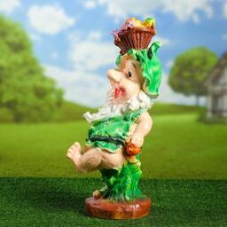 Садовая фигура "Гном с корзиной фруктами наверху справа" 21х18х49см