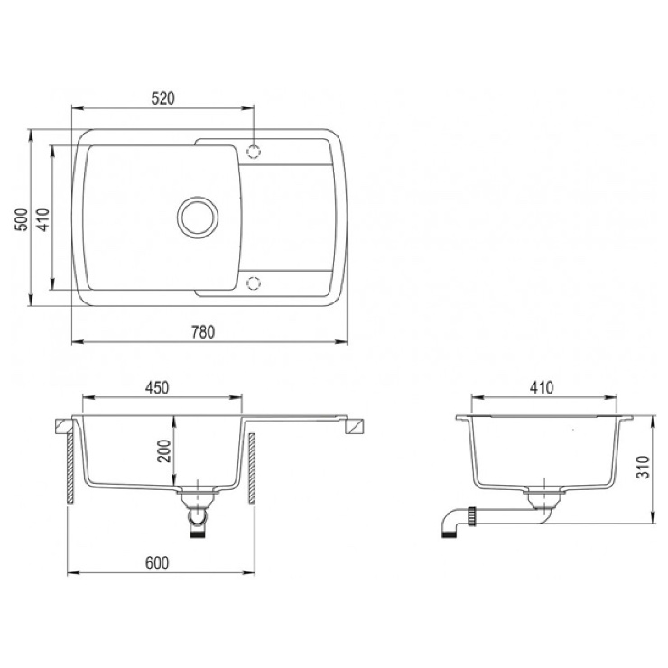 - Форма мойки прямоугольная