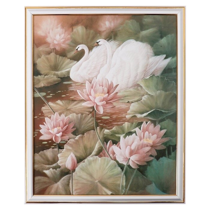 Картина "Лебеди в лилиях" 35х28 (38х31) см