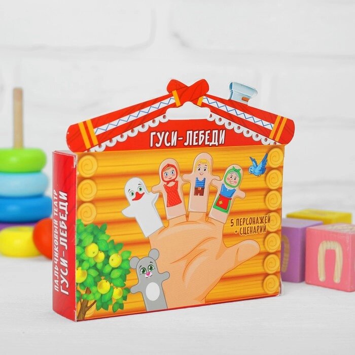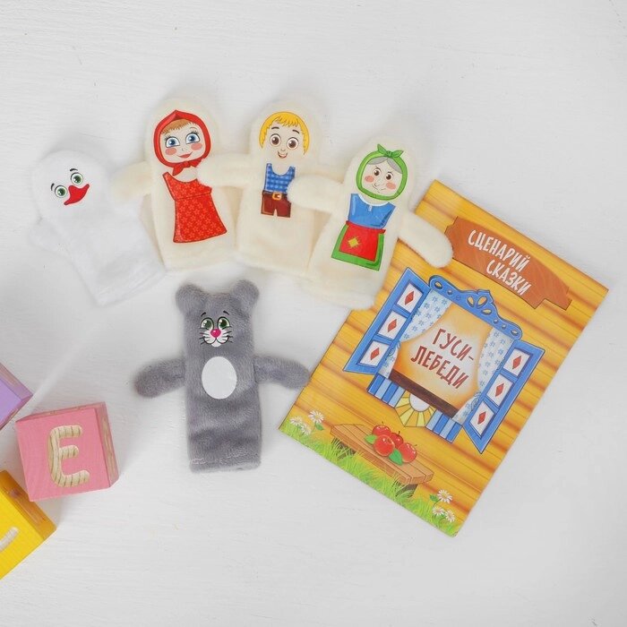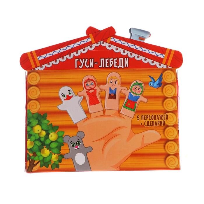 Пальчиковый театр "Гуси-лебеди", набор: 5 персонажей, сценарий