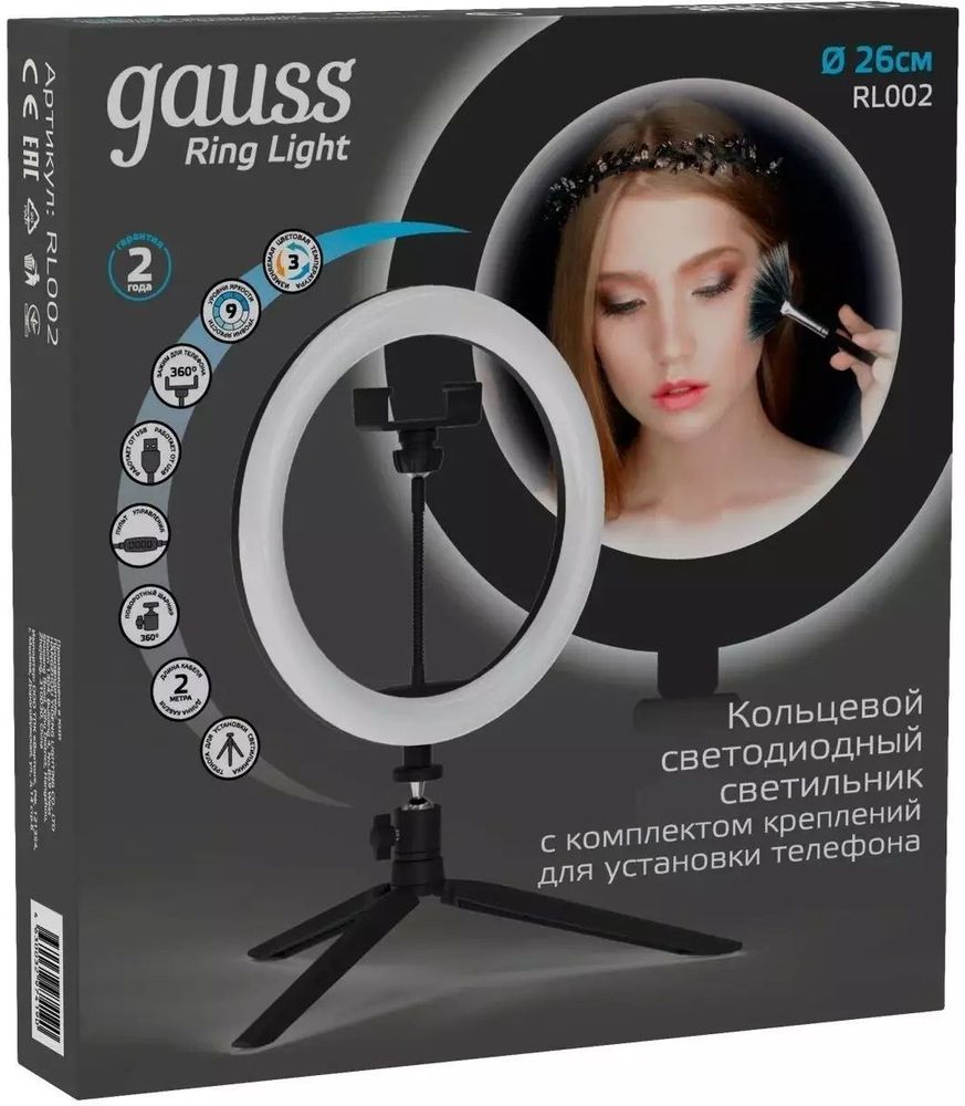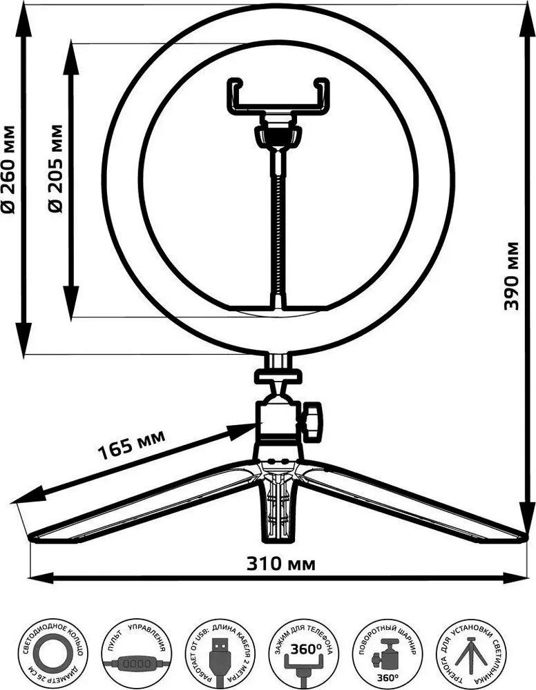 Кольцевая лампа, светодиоды (LED), 3000 - 6500 K.