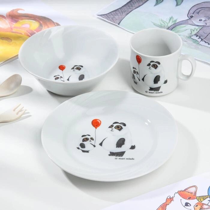 Набор посуды Добрушский фарфоровый завод "Панда", 3 предмета: кружка 200 мл, салатник 360 мл, тарелка мелкая