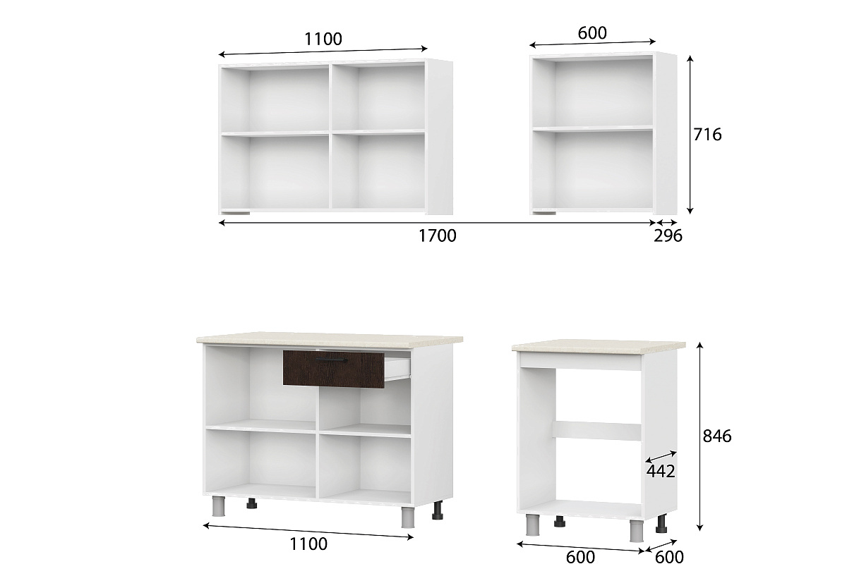 • Ширина кухни 60 см
