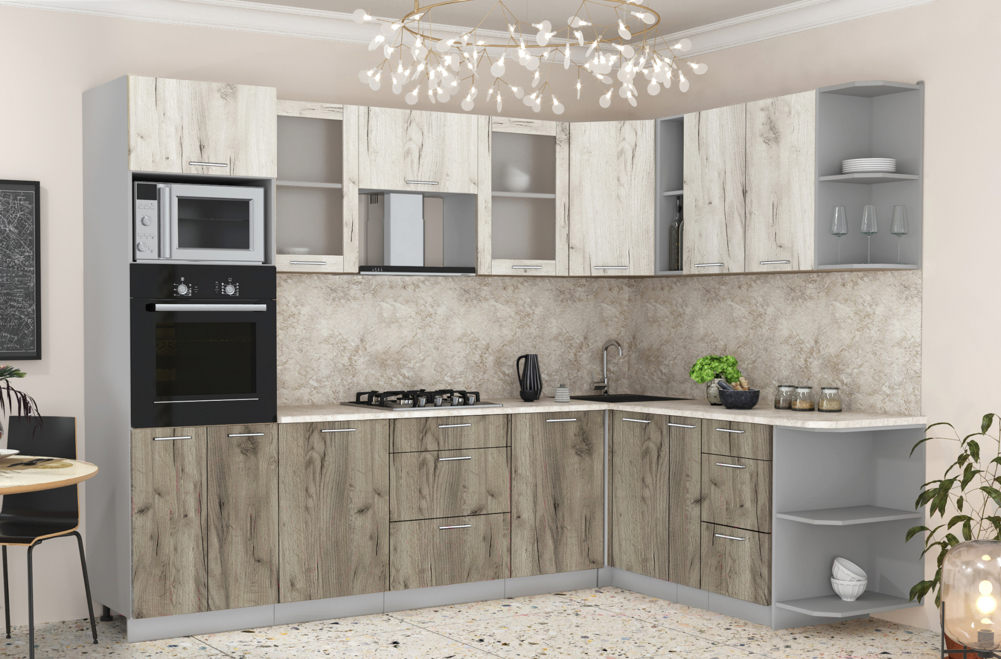 Готовая кухня Интерлиния Мила 1.88x2.8 правая (дуб белый/дуб серый/малага)