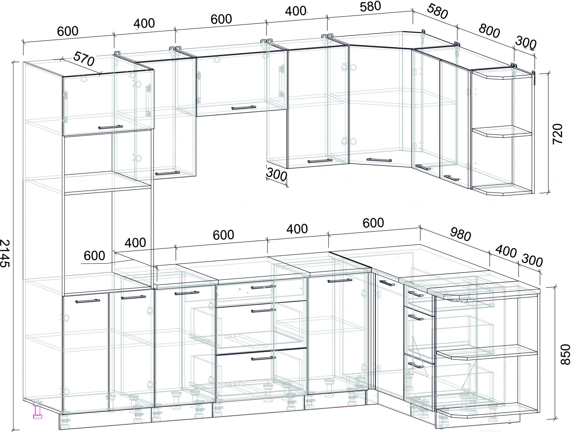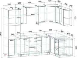 - Глубина нижних шкафов 60 см (48 см — глубина по корпусу)