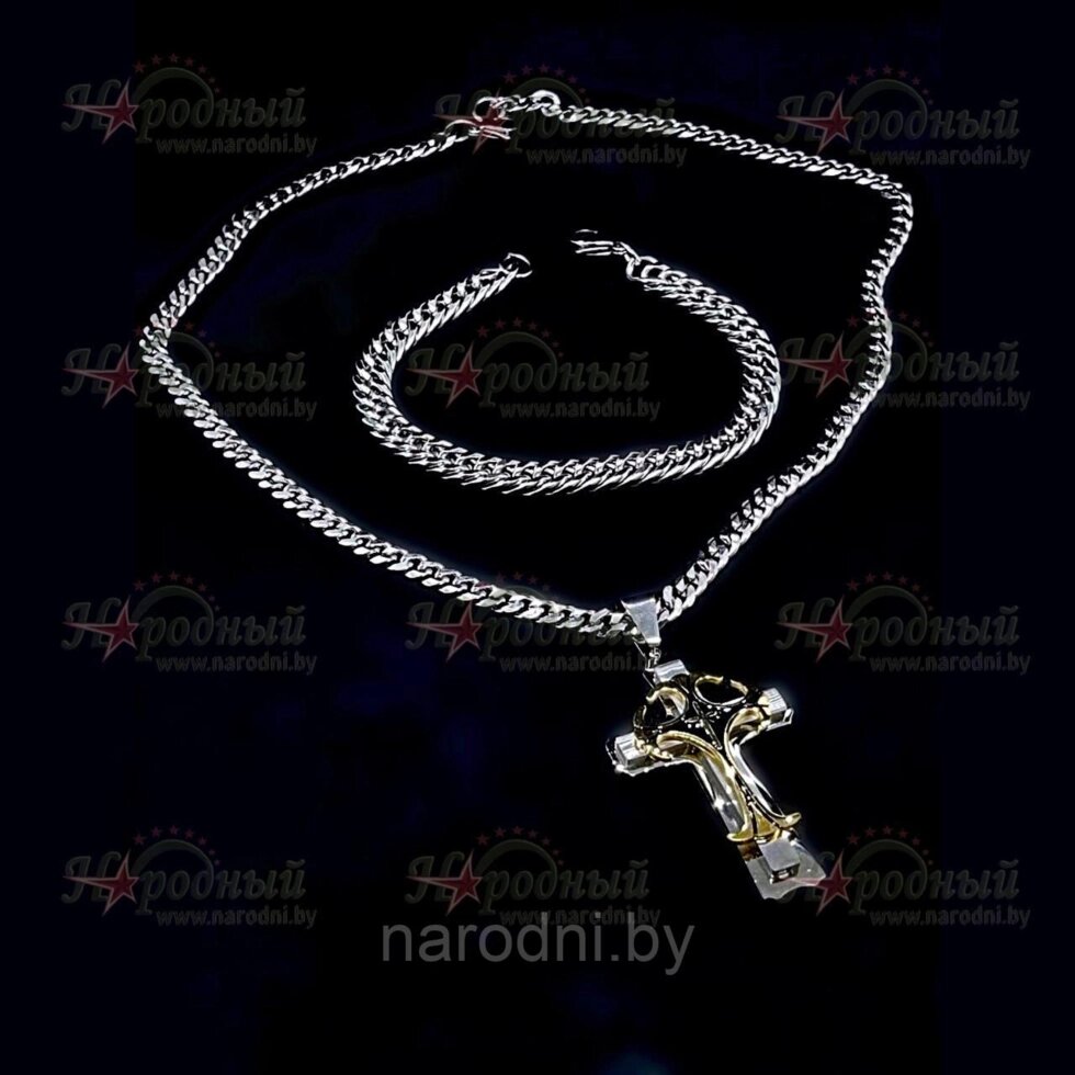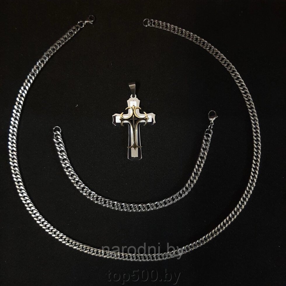 Комплект Доминик (Dominik) цвет Серебро 3 в 1 (Цепочка + Браслет + Крест