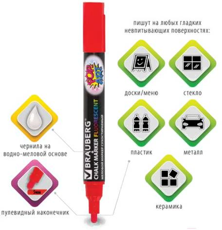 Маркер меловой Brauberg Pop-Art / 151529 (красный)