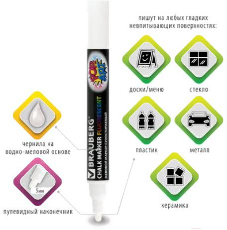 Маркер меловой Brauberg Pop-Art / 151527 (белый)
