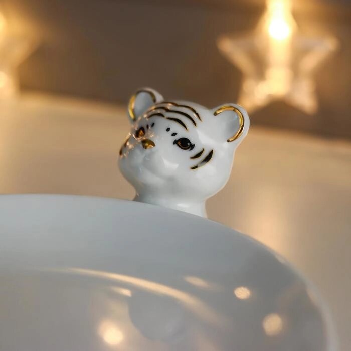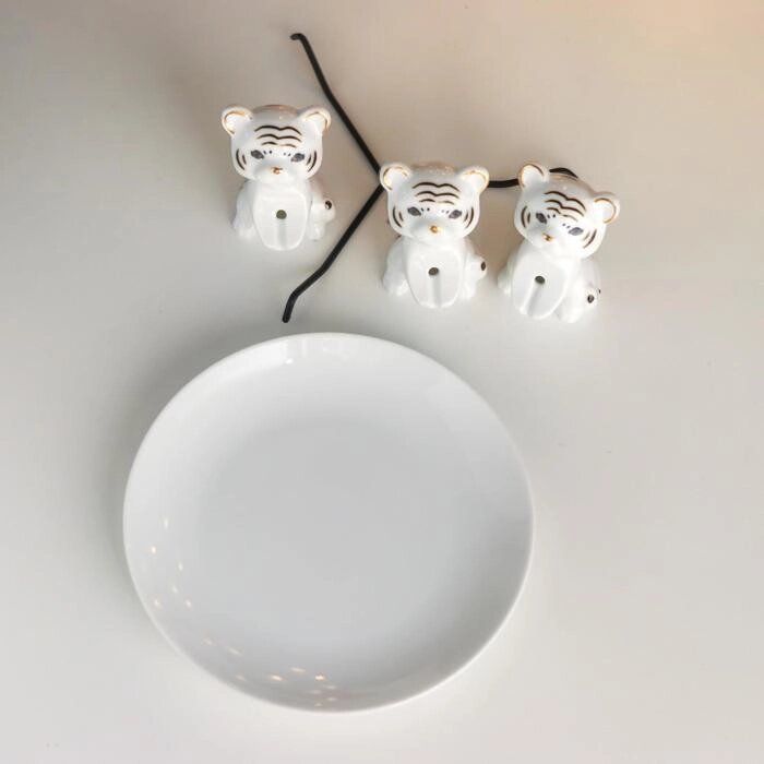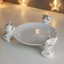 Сувенир керамика подставка "Белые тигрята с тарелочкой" с золотом 6,4х19,4х18,8 см