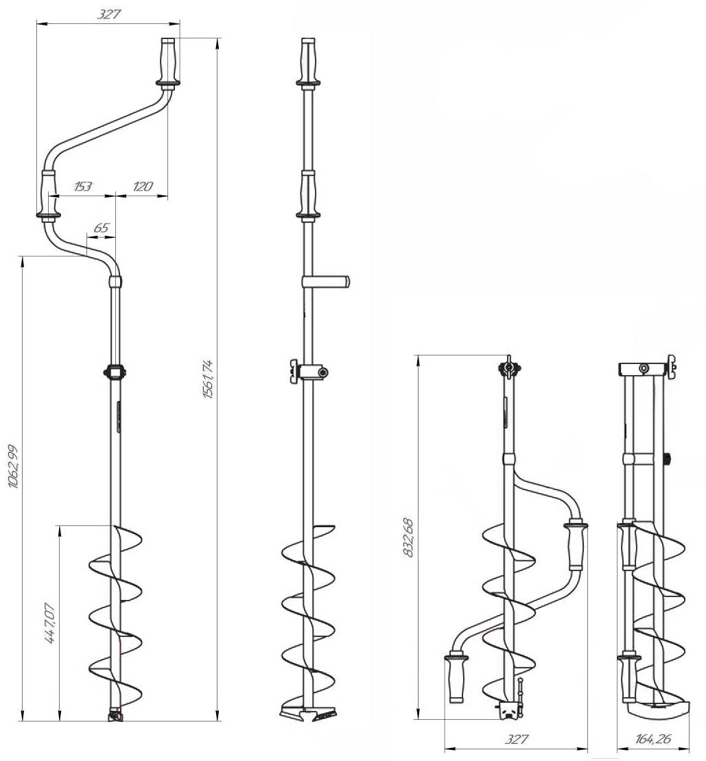 • Складная конструкция ледобура есть