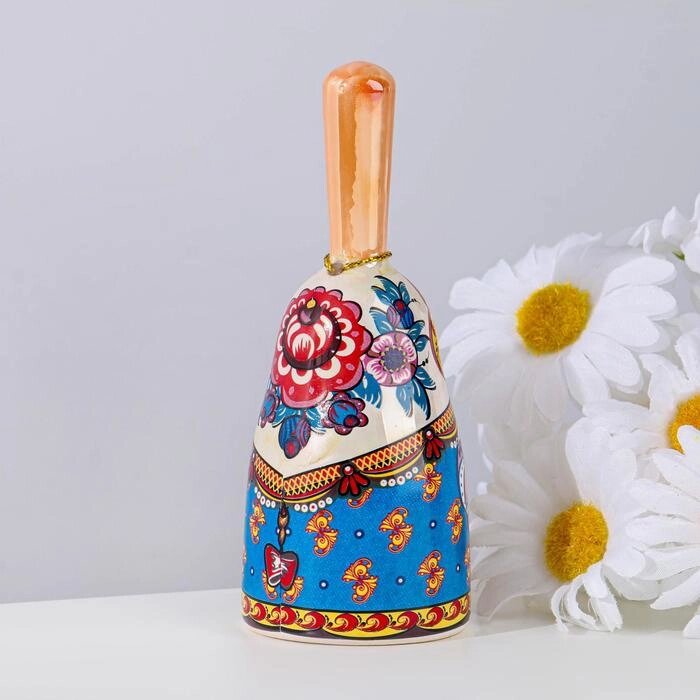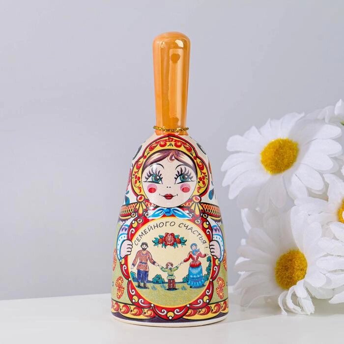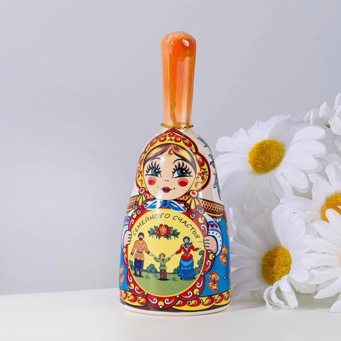 Колокольчик с ручкой "Матрешка" средняя, керамика, микс