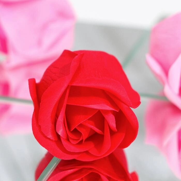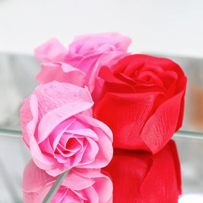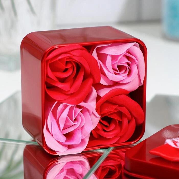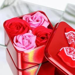 Набор, розовые и красные розы" 4 мыльных лепестка в железной коробке