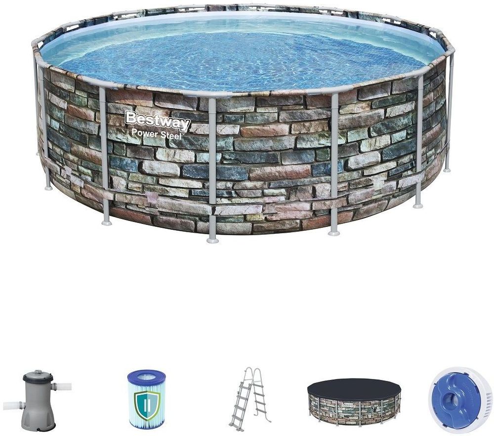 Семейный, каркасный, круглый, 15232 л, сливной клапан, комплектация: тент-чехол, лестница, фильтр-насос, картриджный фильтр.