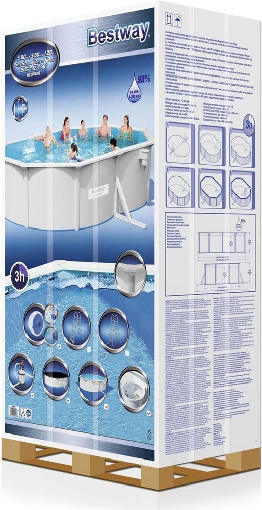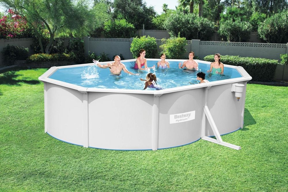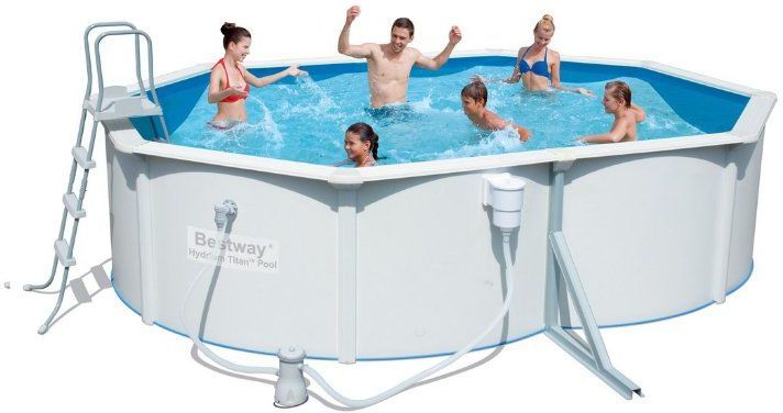 Семейный, каркасный, овальный, 16296 л, сливной клапан, комплектация: тент-чехол, лестница, подстилка, фильтр-насос, песочный фильтр.