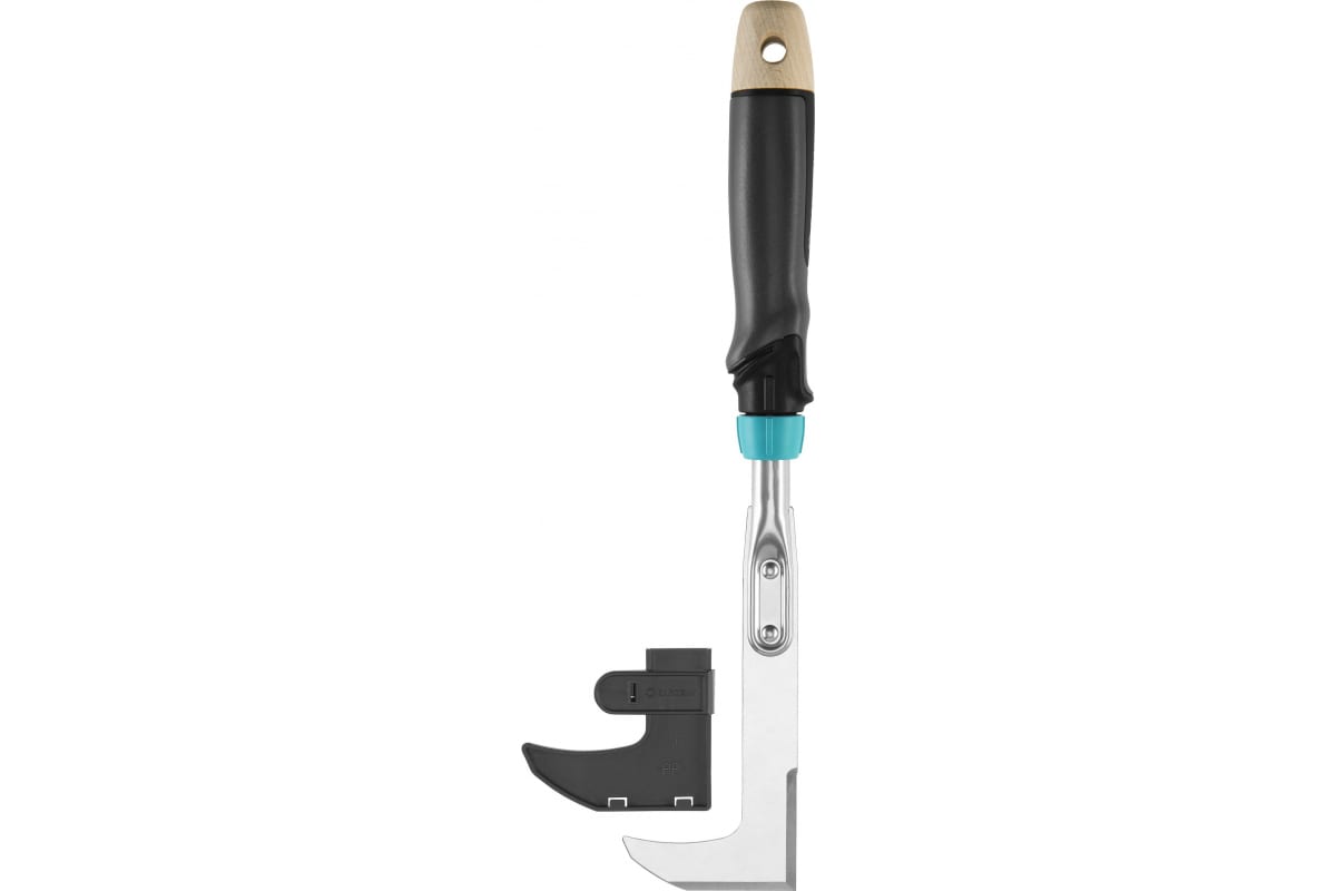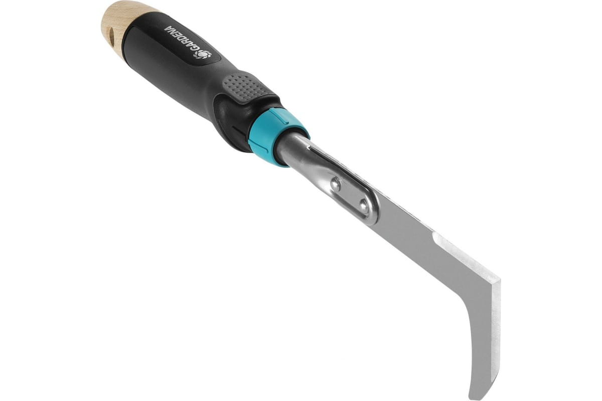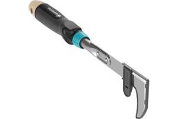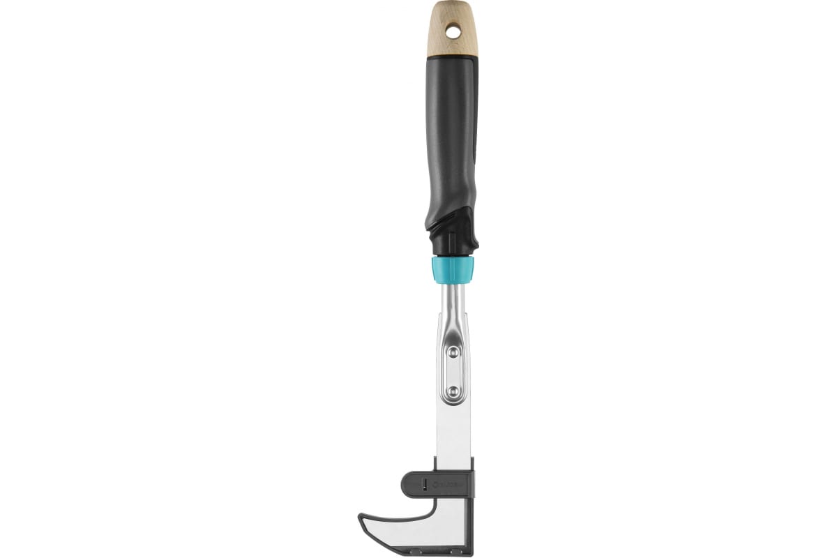 Конец ручки этого щелевого очистителя имеет деревянную рукоятку, на 100% сделанную из сертифицированной знаком FSC® древесины, и придаёт инструменту стильный и естественный внешний вид. Этот материал не только экологичен, но и делает инструмент особенно прочным и долговечным. Благодаря эргономичной форме ручки удалять сорняки особенно просто.