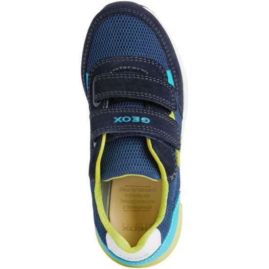Кроссовки GEOX J ALBEN BOY J159EA01420C0749 для мальчика, цвет синийКроссовки для мальчиков с удобной дышащей конструкцией. Эти кроссовки Alben, вдохновленные беговыми кроссовками в винтажном стиле, имеют двухцветную подошву и выполнены из сетки и замши в синем цвете с деталями цвета лайма. Эти дышащие удобные кроссовки идеально подходят для повседневного использования.
