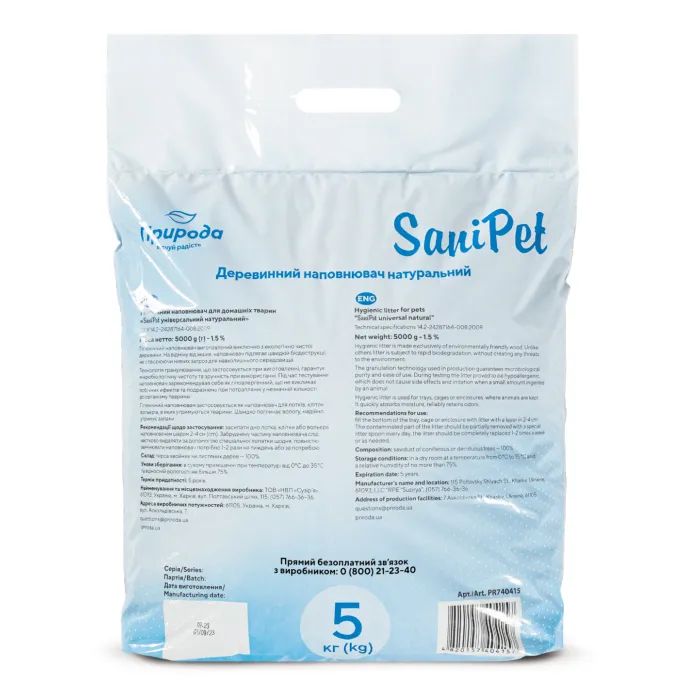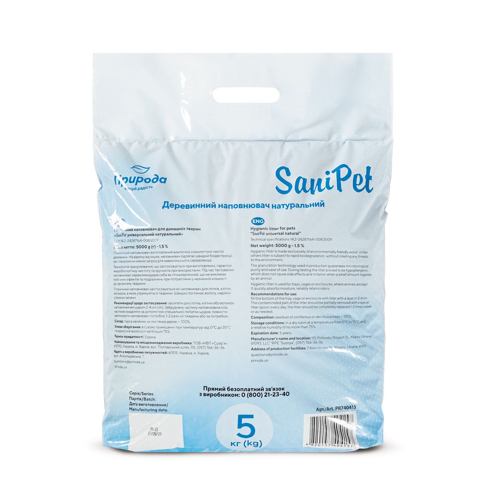 Наповнювач для туалету Природа Sani Pet універсальний деревний (натуральний) 5 кг (4820157404157)