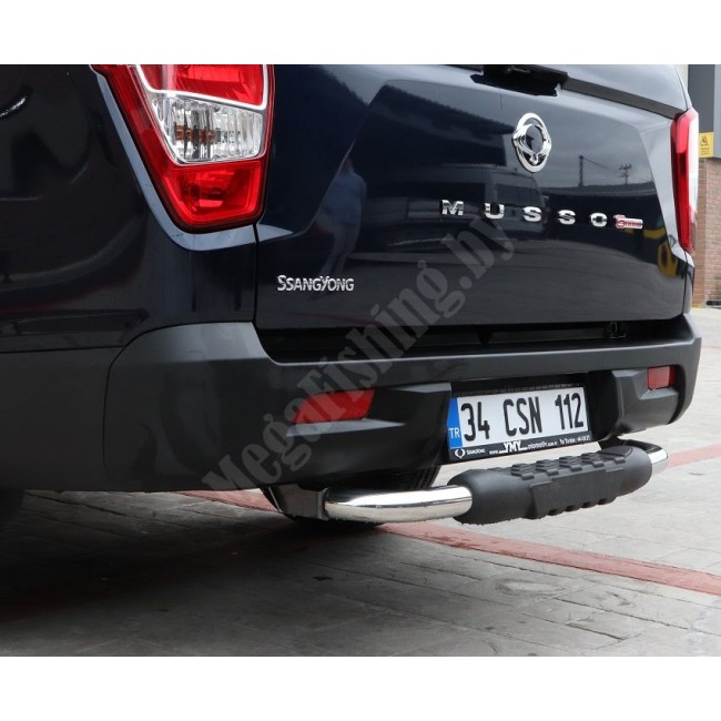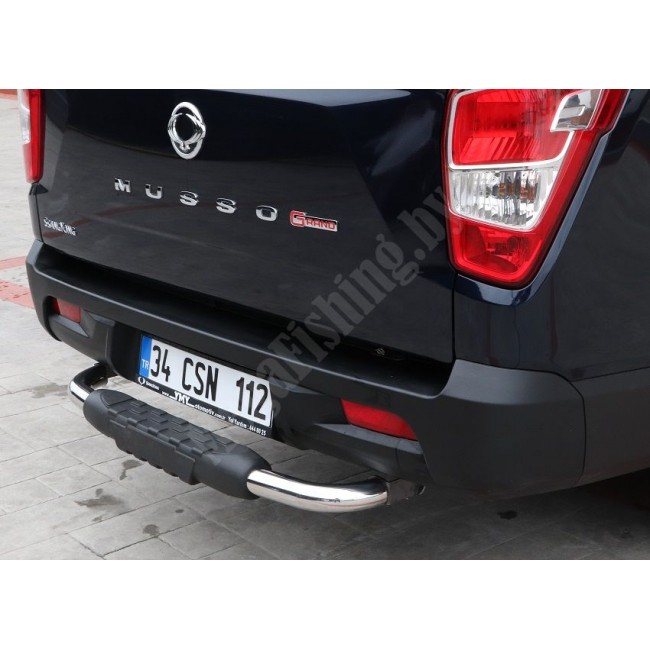 Задняя заднего бампера подножка TITANIC NEW AK038 для Ssangyong Musso 2 (2018-). Изготовлена из высококачественной хромированной нержавеющей стали ASI 304. диаметр трубы D60 мм. Защита заднего бампера разработана в соответствии с размерами автомобиля. Простая установка без сварки и сверления. Защита заднего бампера предаст вашему автомобилю стильный и впечатляющий вид.