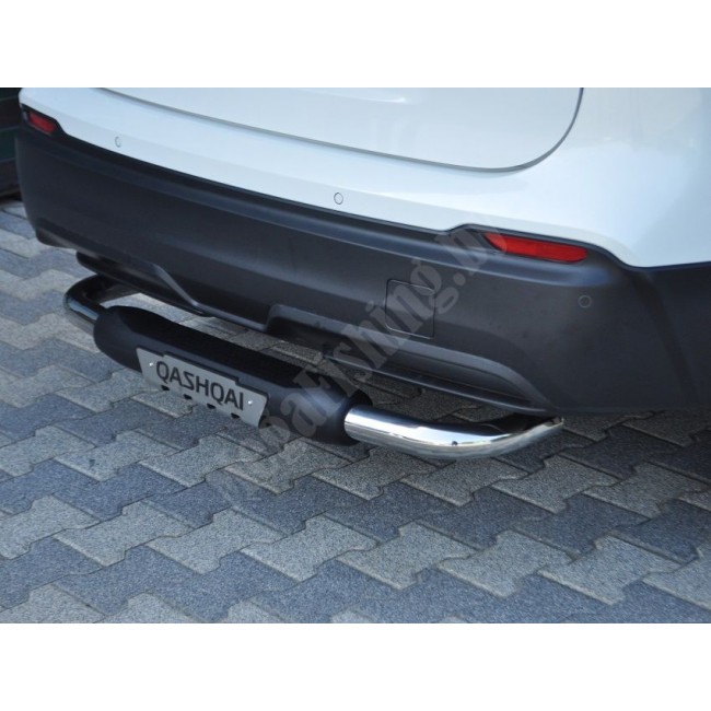 Задняя заднего бампера подножка TITANIC NEW AK038 для Nissan Qashqai 2 (2017-2021) J11. Изготовлена из высококачественной хромированной нержавеющей стали ASI 304. диаметр трубы D60 мм. Защита заднего бампера разработана в соответствии с размерами автомобиля. Простая установка без сварки и сверления. Защита заднего бампера предаст вашему автомобилю стильный и впечатляющий вид.
