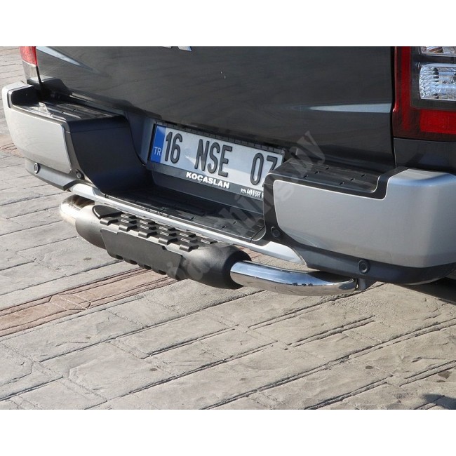 Задняя заднего бампера подножка TITANIC NEW AK038 для Mitsubishi L200 5 (2018-). Изготовлена из высококачественной хромированной нержавеющей стали ASI 304. диаметр трубы D60 мм. Защита заднего бампера разработана в соответствии с размерами автомобиля. Простая установка без сварки и сверления. Защита заднего бампера предаст вашему автомобилю стильный и впечатляющий вид.