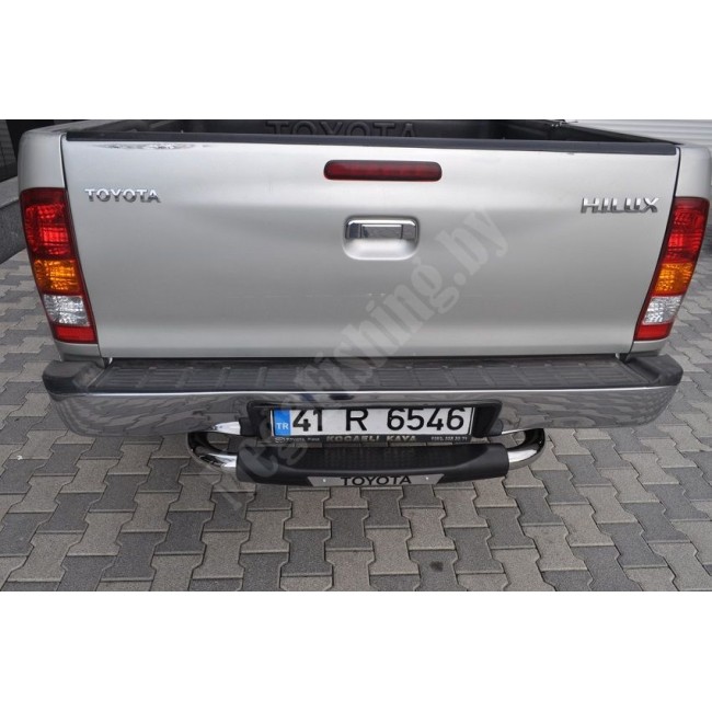 Задняя заднего бампера подножка TITANIC AK025 для Toyota Hilux 7 (2004-2011) с логотипом. Изготовлена из высококачественной хромированной нержавеющей стали ASI 304. диаметр трубы D60 мм. Защита заднего бампера разработана в соответствии с размерами автомобиля. Простая установка без сварки и сверления. Защита заднего бампера предаст вашему автомобилю стильный и впечатляющий вид.