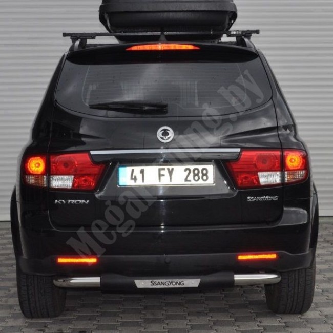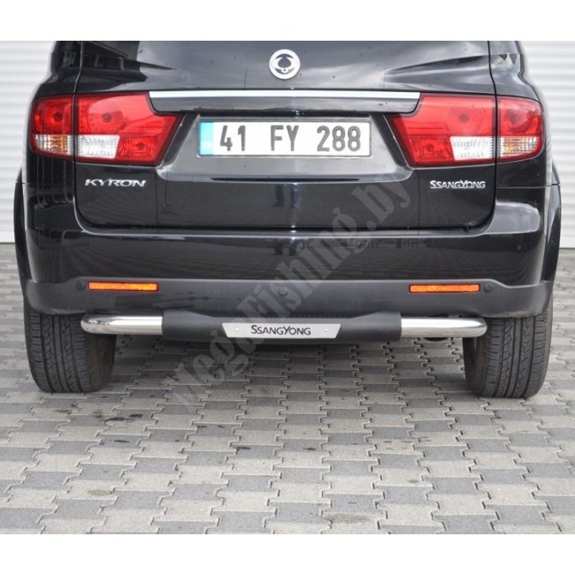 Задняя заднего бампера подножка TITANIC AK025 для Ssangyong Kyron (2007-2015) с логотипом. Изготовлена из высококачественной хромированной нержавеющей стали ASI 304. диаметр трубы D60 мм. Защита заднего бампера разработана в соответствии с размерами автомобиля. Простая установка без сварки и сверления. Защита заднего бампера предаст вашему автомобилю стильный и впечатляющий вид.