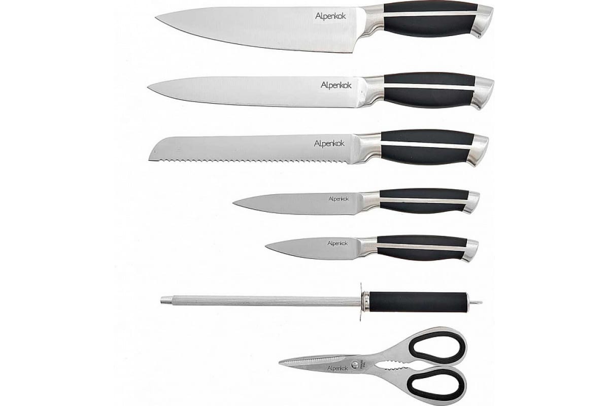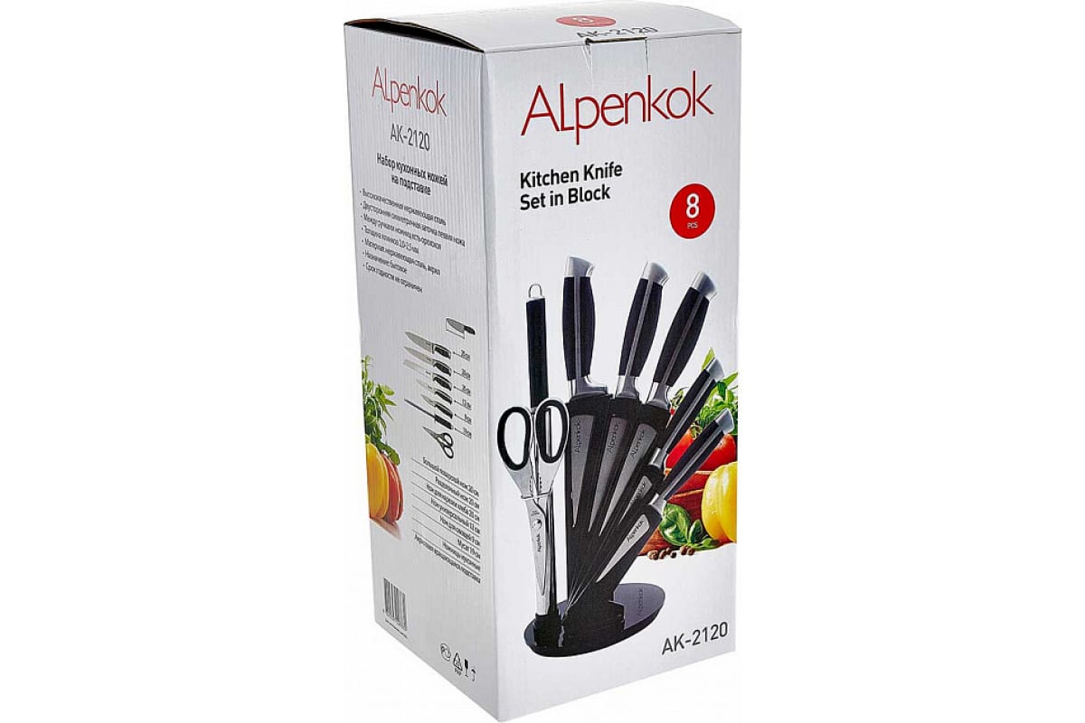 Набор ножей Alpenkok AK-2120 на акриловой подставке, 8 предметов нержавеющая сталь 6 Р1-00006090 предназначен для использования на кухне.
