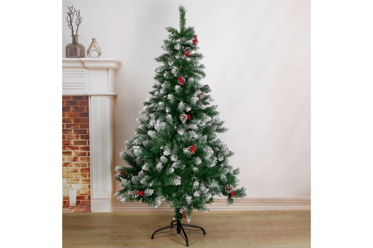 Елка Зимнее волшебство Иней с ягодками, 150 см, d нижнего яруса 95 см, 370 веток, металлическая подставка 540646 придется по душе неординарным личностям с безупречным вкусом, ищущим новые и свежие решения для преображения своего интерьера.