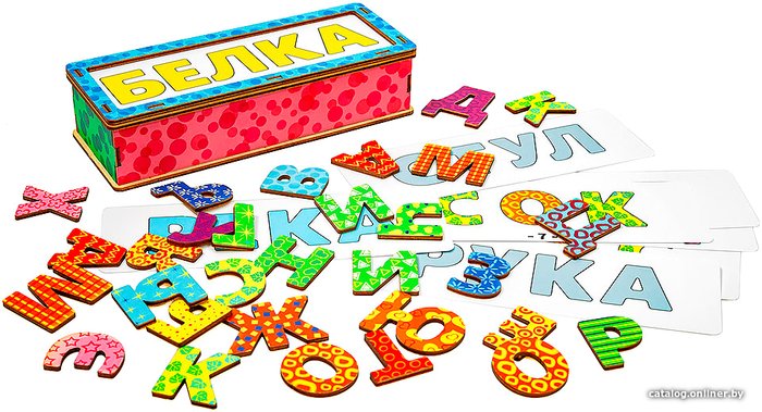 - Комплектация 8 двусторонних карточек и 42 буквы (А, И, Е, О, Г, П, М, С, К -по 2 буквы)