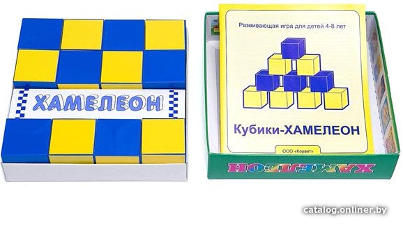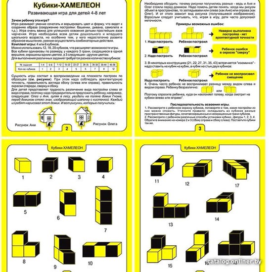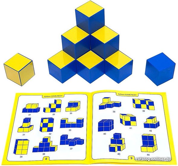 - Комплектация 12 двуцветных пластмассовых кубиков, брошюра с заданиями (59 заданий)
