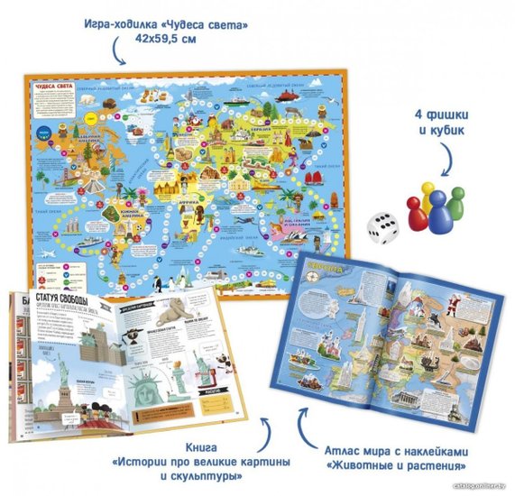 - Комплектация Книга, игра-ходилка, Атлас с наклейкам