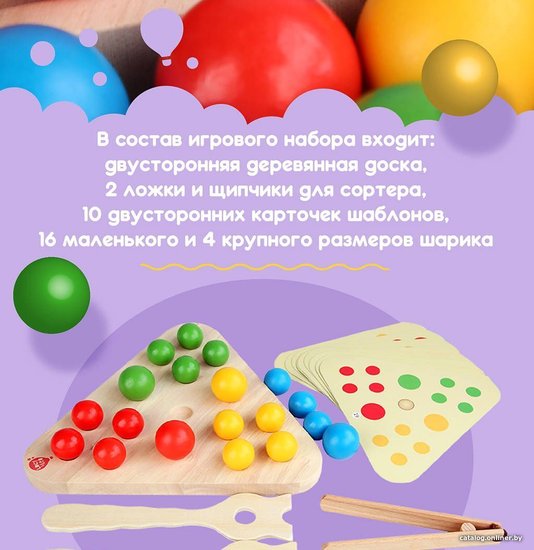 • Назначение для развития координации/моторики, для развития логики/внимания, для изучения оттенков цветов