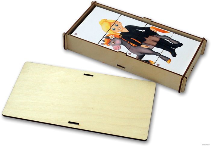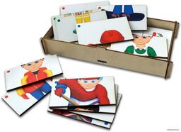 - Комплектация Деревянный ящик для хранения картинок – 1 шт.Составные картинки 6 шт. с изображением людей разных профессий.Каждая картинка поделена на четыре части.